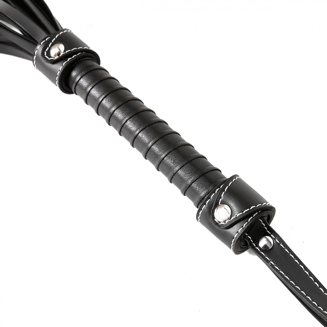 Le manche ergonomique assure une prise en main confortable et sécurisée, même lors d’une utilisation prolongée. Enroulé de cuir synthétique et doté de coutures renforcées, il est conçu pour offrir une manipulation précise. La boucle de poignet intégrée apporte une sécurité supplémentaire, permettant de garder le fouet bien en main, même dans les moments les plus passionnés.
