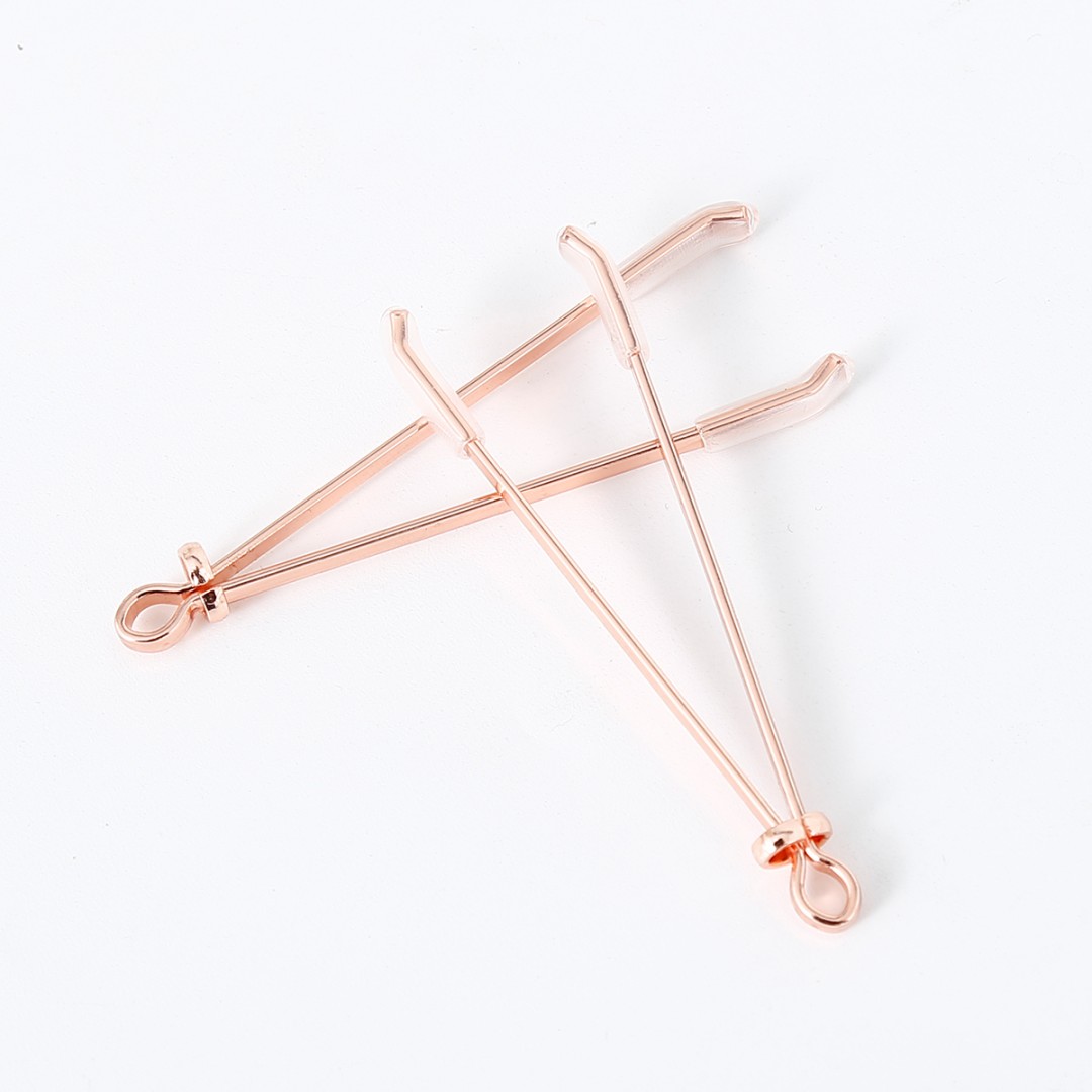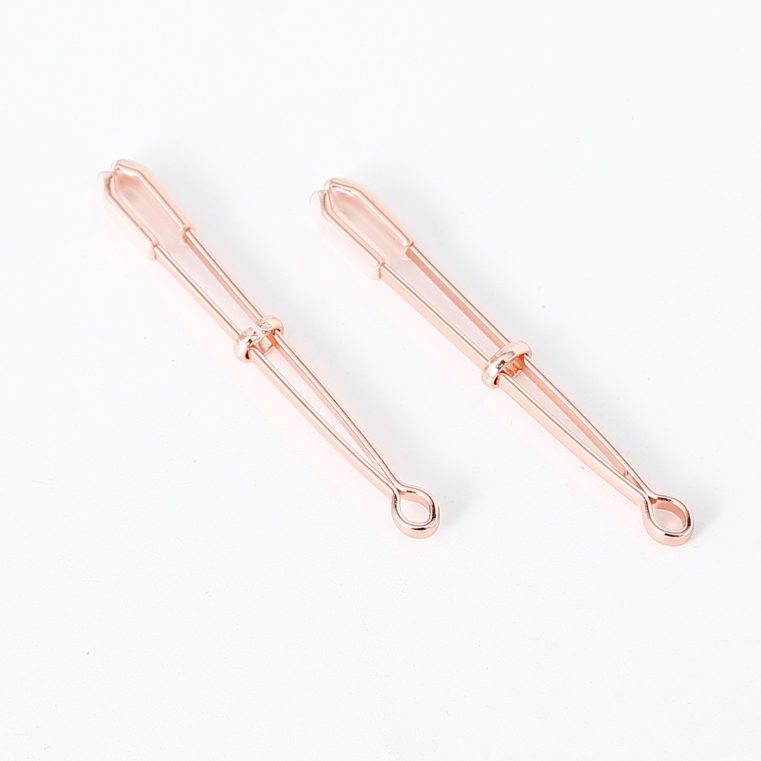 Les pinces à seins or rose sont l'accessoire parfait pour ajouter une touche de sensualité et d'élégance à vos moments intimes. Fabriquées en métal or rose, elles se distinguent par leur design épuré et leur finition brillante, apportant une esthétique raffinée à vos jeux érotiques. Leur couleur unique et sophistiquée s'adapte parfaitement à toutes les préférences et styles.