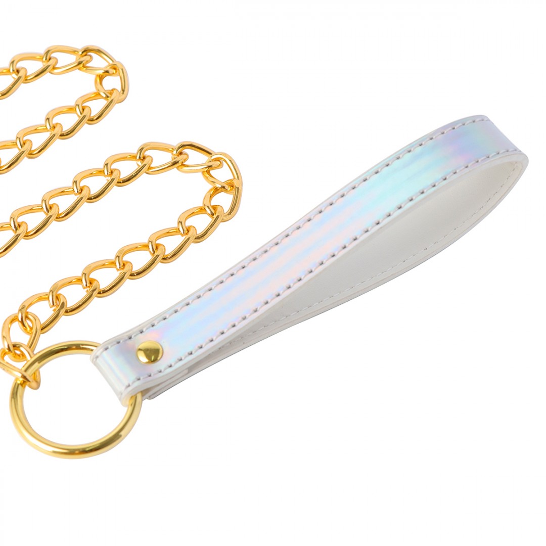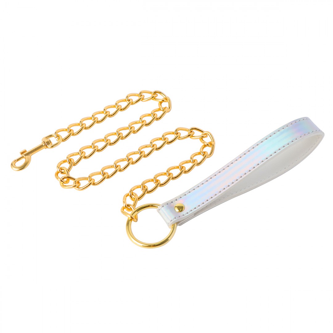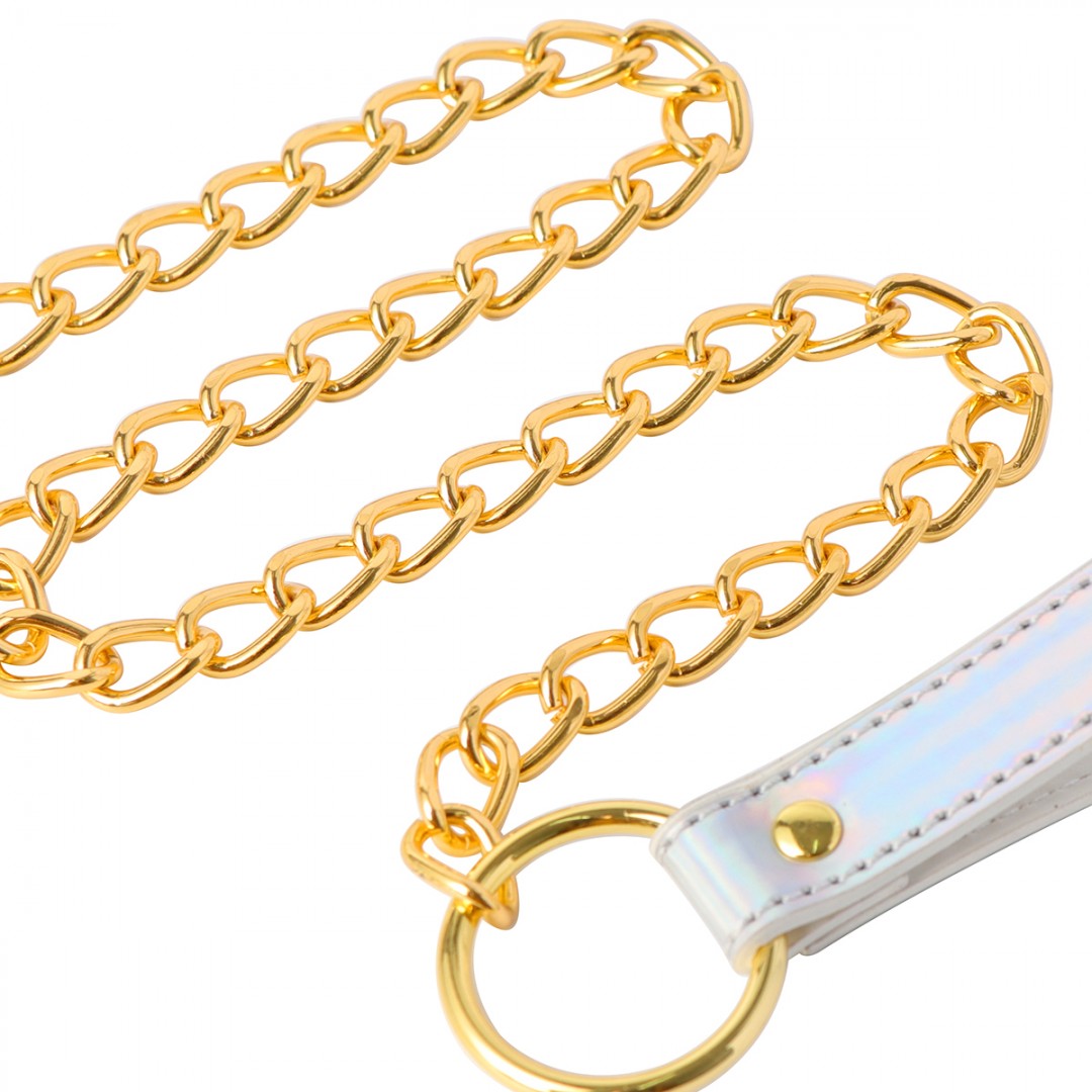 La chaîne dorée, robuste et légère, est fixée à un anneau doré, ajoutant une touche polyvalente au design. Elle permet une manipulation facile, offrant de multiples possibilités d’utilisation selon vos envies. Ce collier est idéal pour les débutants curieux ou les passionnés expérimentés, souhaitant explorer de nouvelles dimensions d’intimité ou simplement parfaire leur style.