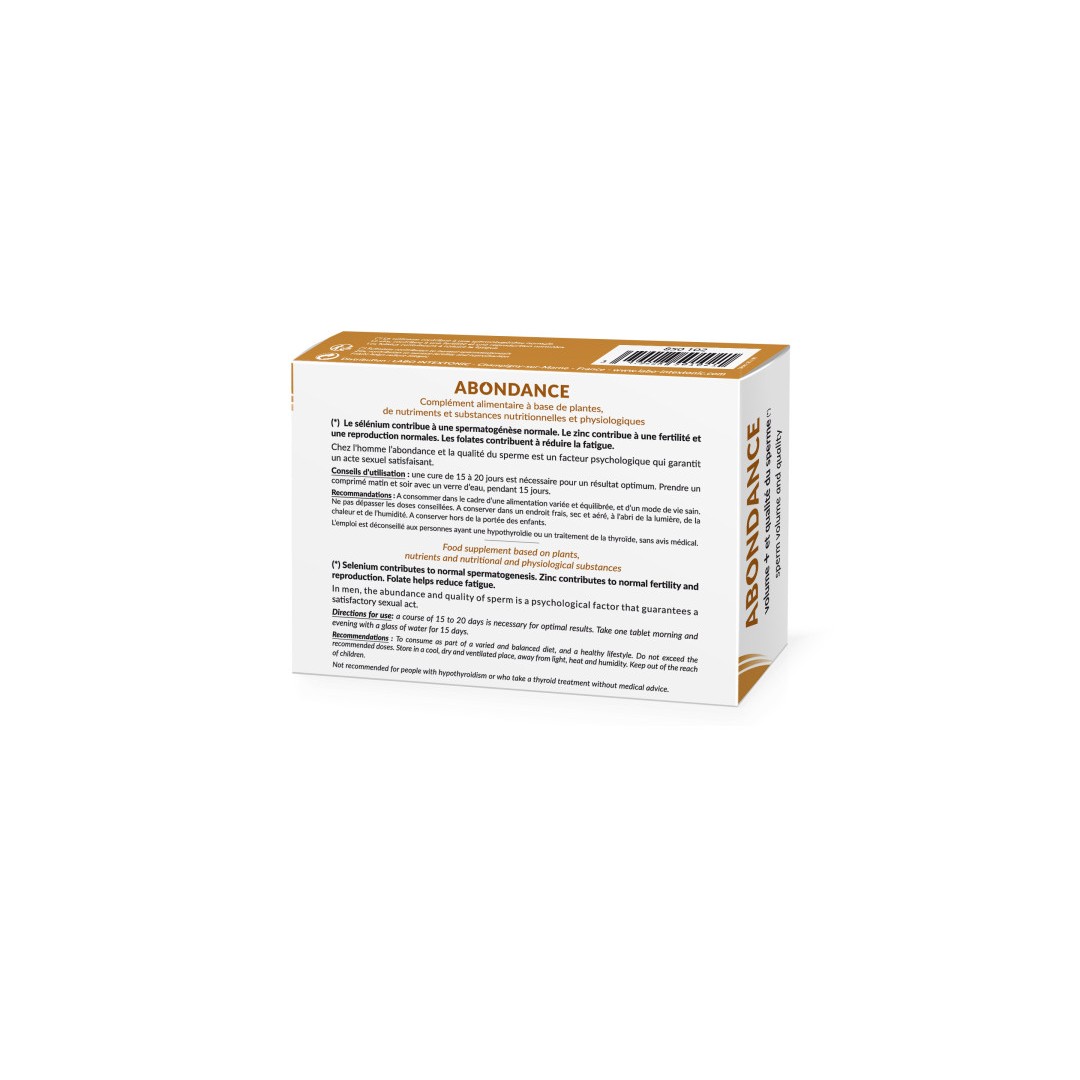 Pour garantir une qualité de sperme irréprochable et un volume conséquent, nous vous proposons sans attendre les comprimés Abondance de votre grossiste Labo Intex-tonic.