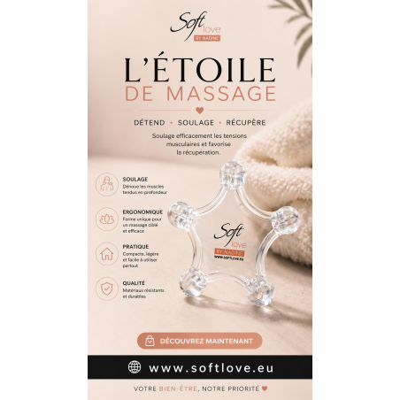 L’étoile de massage Soft Love est un outil indispensable pour ceux qui recherchent une détente immédiate et une meilleure récupération musculaire. Que vous soyez sportif ou que vous passiez de longues heures au bureau, cet outil compact améliore votre bien-être au quotidien.
