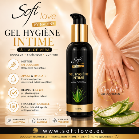 Le gel hygiène intime à l’Aloe Vera Soft Love 150ml est conçu pour offrir fraîcheur, confort et protection quotidienne. Grâce à sa formule douce et équilibrée, il respecte la flore intime, tout en assurant un nettoyage efficace et délicat. Son pH physiologique, combiné à des ingrédients naturels, garantit une utilisation sans irritation, même pour les peaux sensibles.