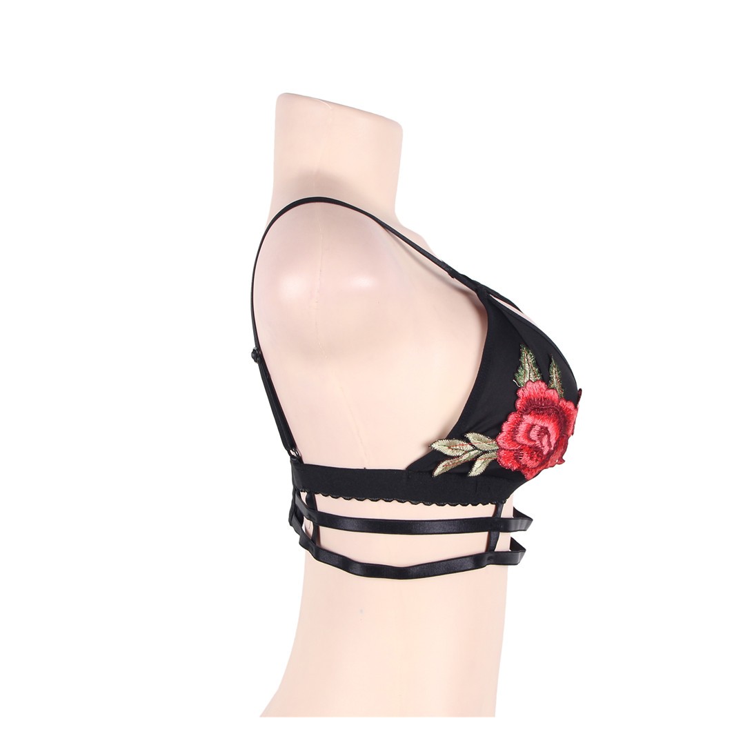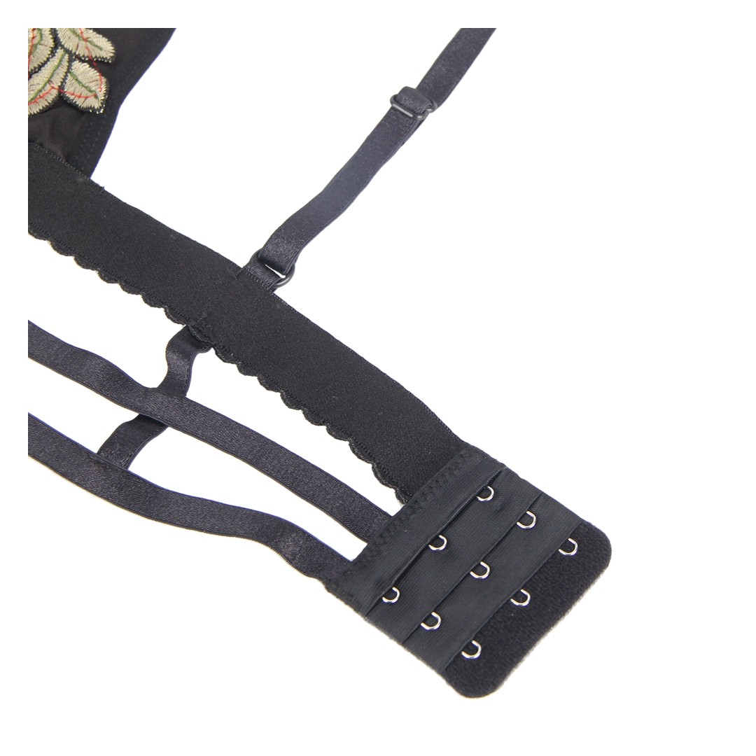 Les broderies florales rouges et vertes sur les bonnets captent immédiatement le regard, apportant une touche romantique et élégante. Chaque fleur est minutieusement travaillée pour offrir une qualité exceptionnelle et une apparence sophistiquée. Ces détails rehaussent le style global du soutien-gorge, en faisant une pièce à la fois chic et tendance.