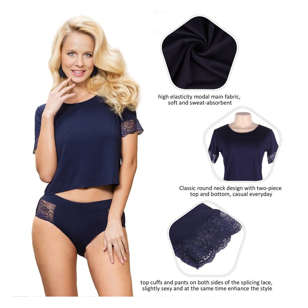 Portez cet ensemble tel quel pour des nuits confortables ou combinez le haut avec d’autres pièces pour un look décontracté à la maison. Sa dentelle délicate apporte une touche de glamour même dans vos moments de relaxation.