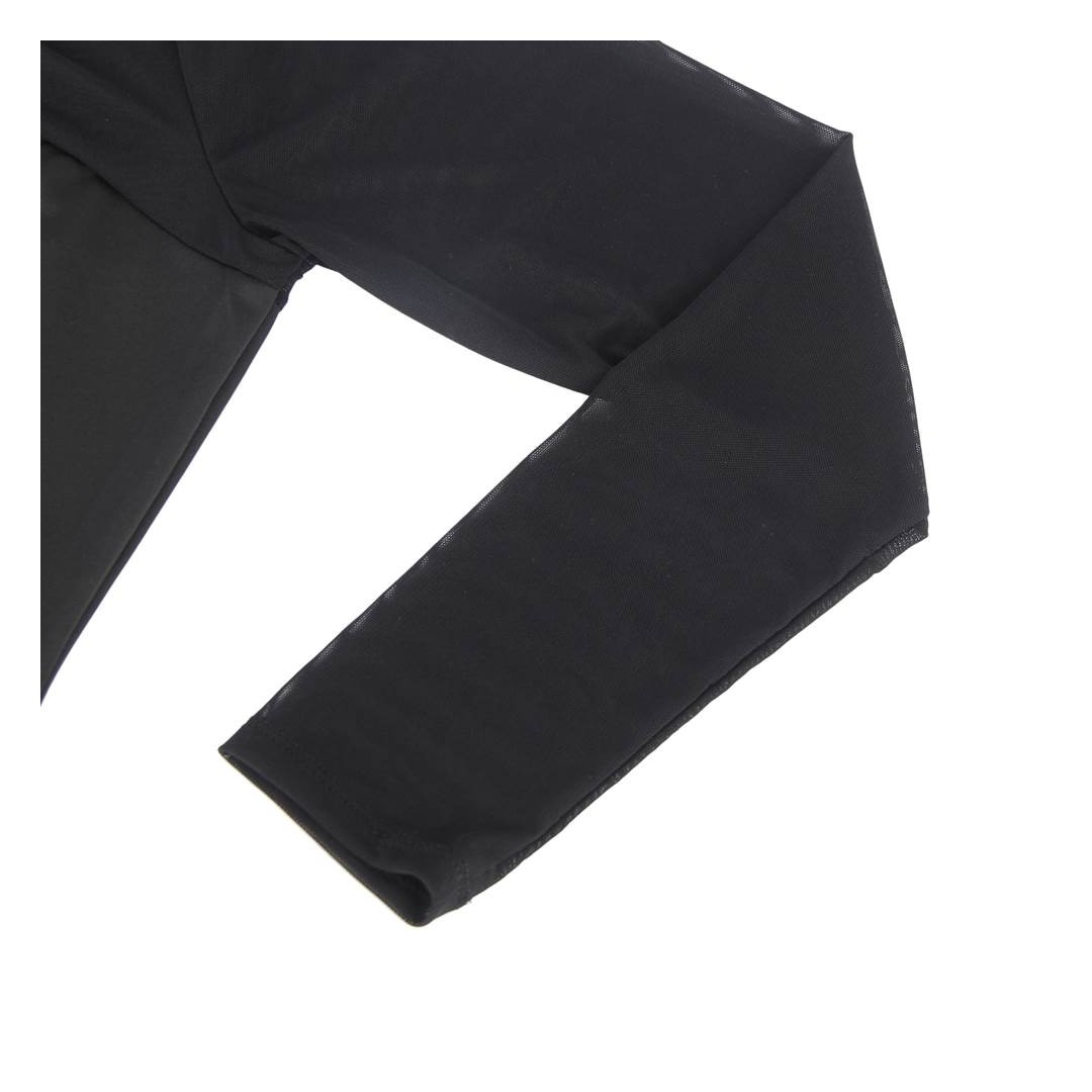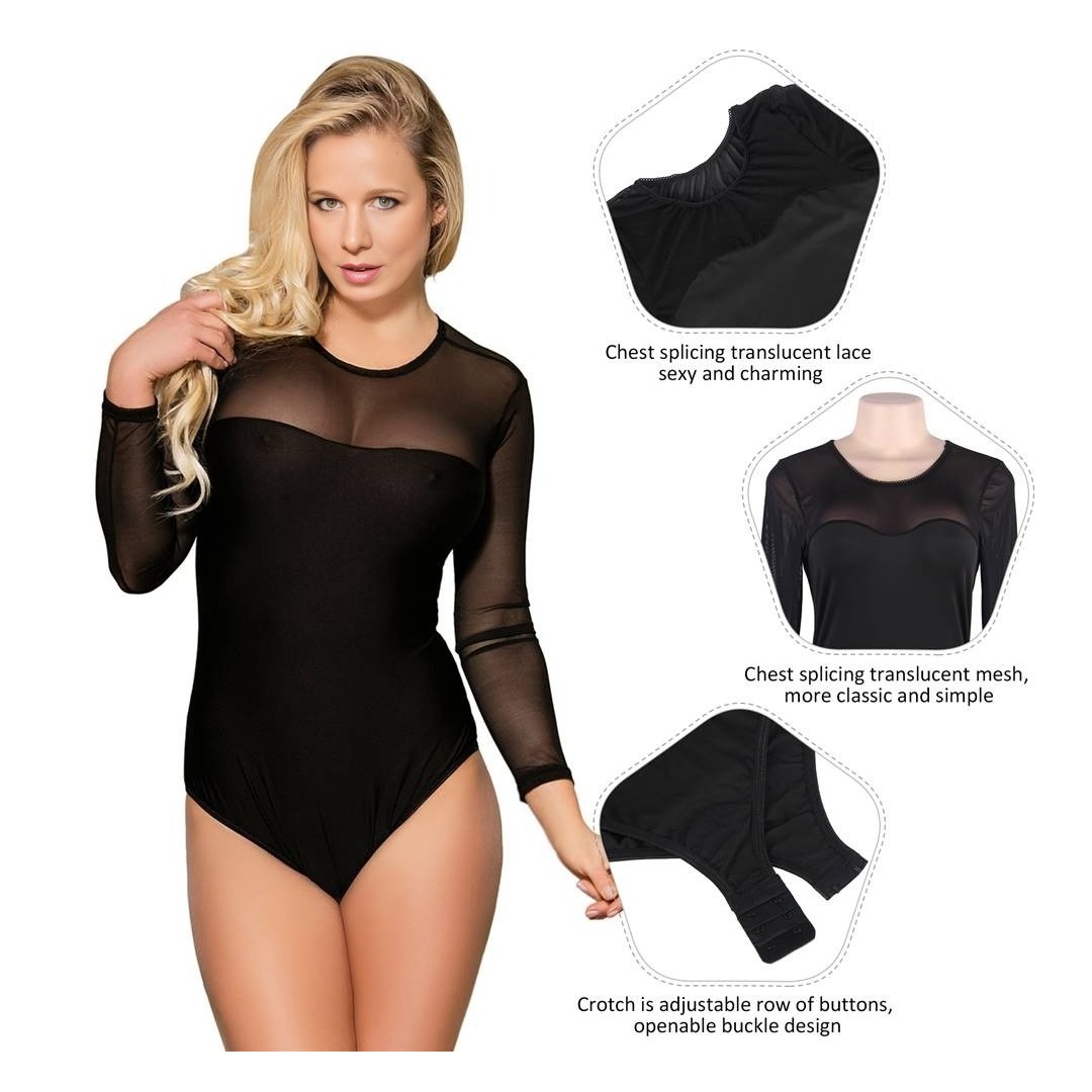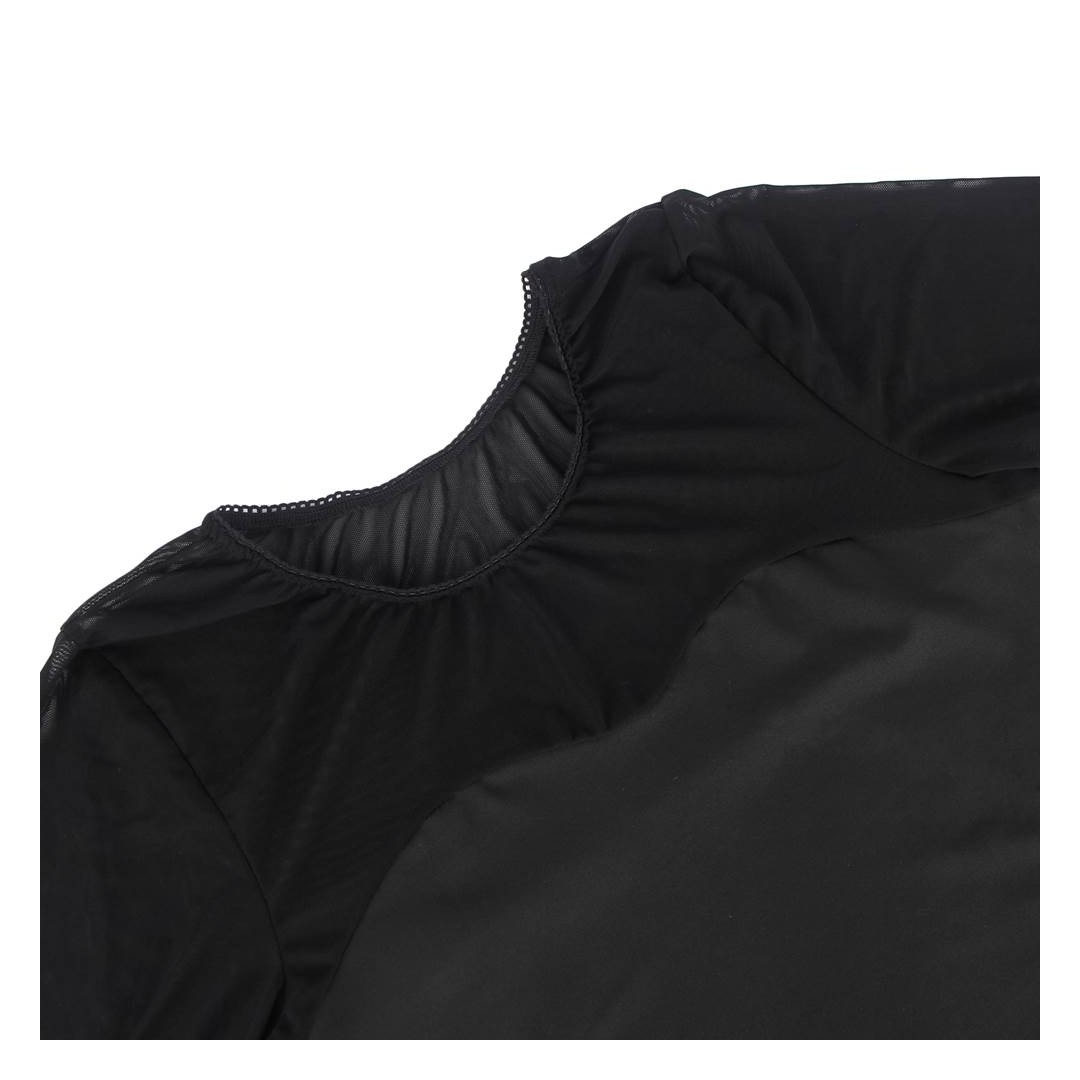 Apportez une touche de glamour et de sophistication à votre garde-robe avec ce body noir en mesh transparent à manches longues.