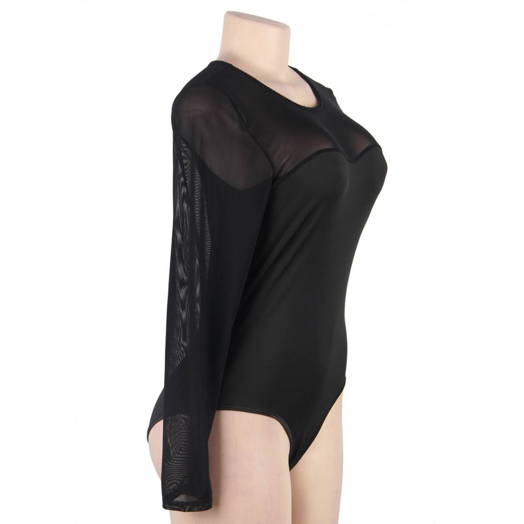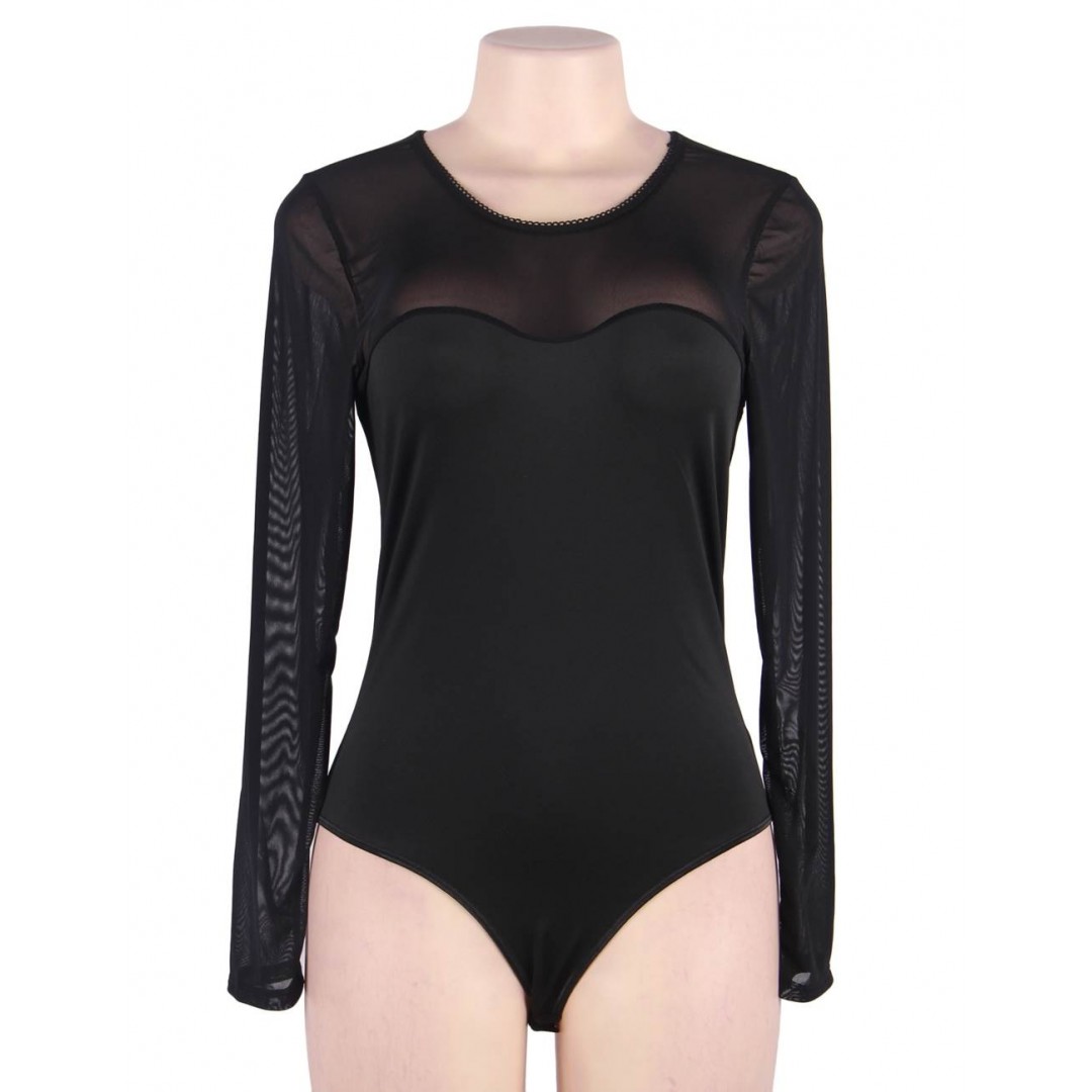 Ce body noir en mesh transparent à manches longues allie élégance et sensualité.