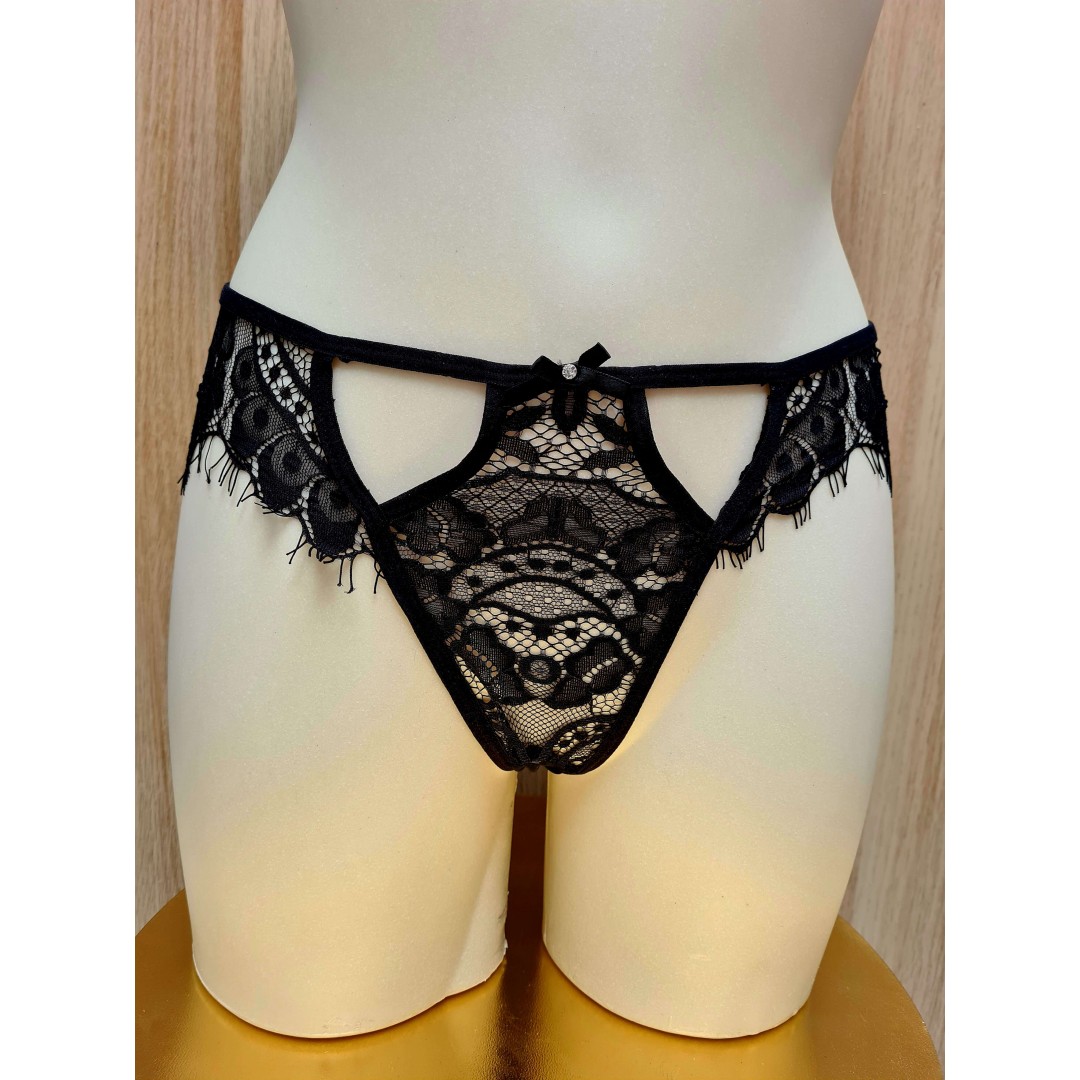 La culotte Valy se distingue par son design audacieux aux découpes subtiles et sensuelles. La dentelle noire aux motifs délicats sublime vos courbes avec élégance. Le jeu de transparence ajoute une dimension romantique tout en laissant deviner la peau. Une petite ouverture centrale ornée d’un noeud délicat ajoute une note coquine et raffinée.