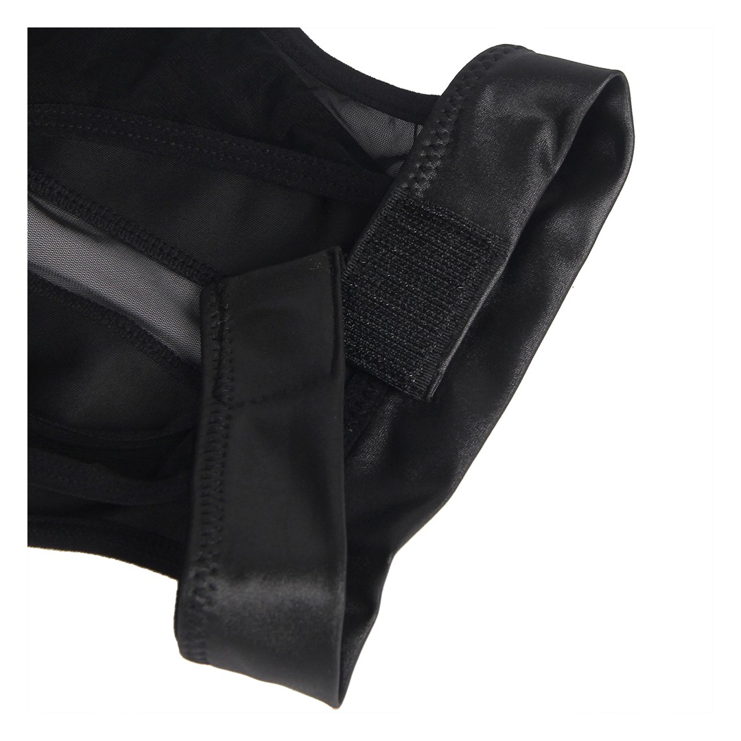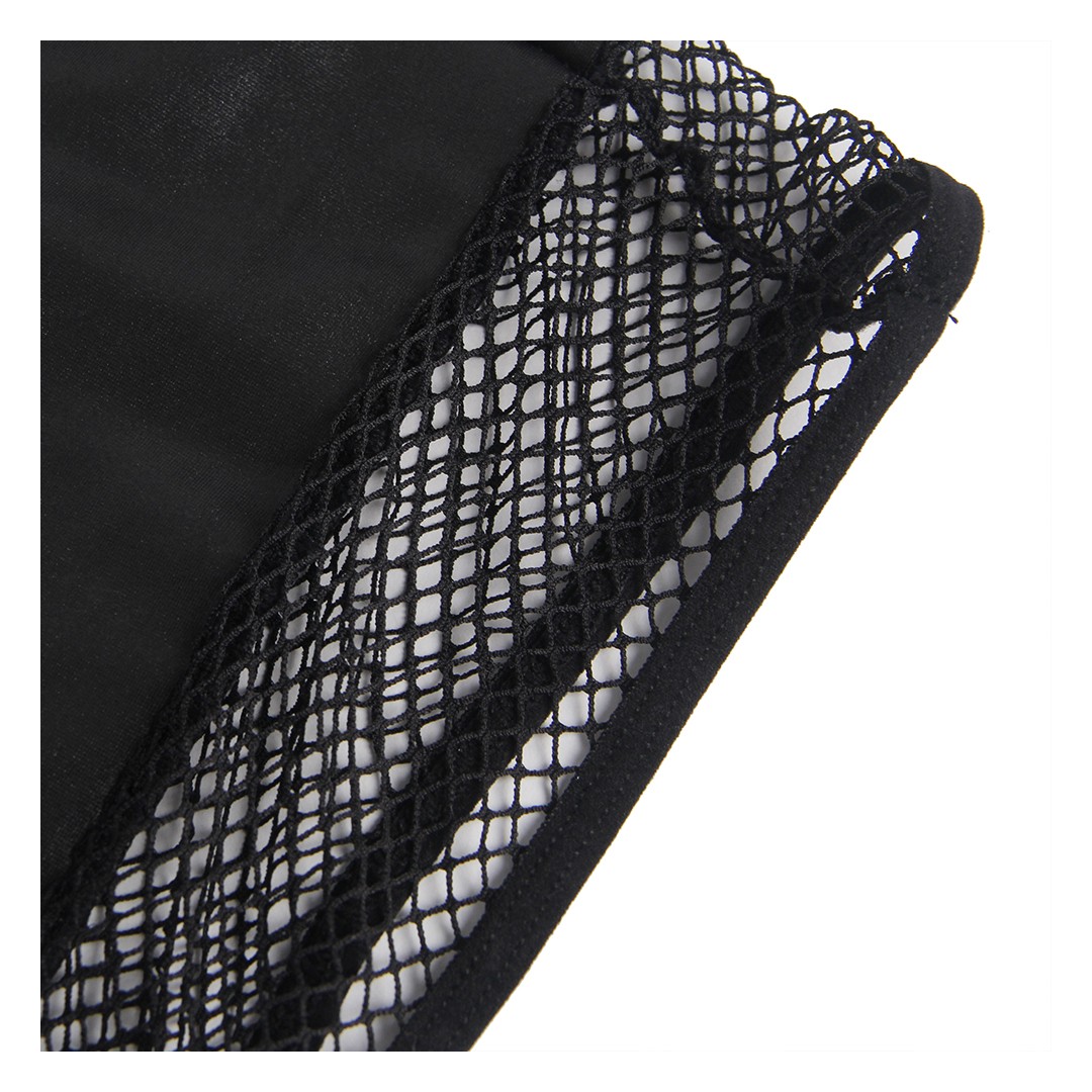 Le col montant ajoute une touche d'élégance discrète au design. Les empiècements en résille situés sur les côtés et le bas apportent une sensualité subtile. Ces détails transparents permettent de jouer sur les contrastes pour un look moderne et audacieux.
