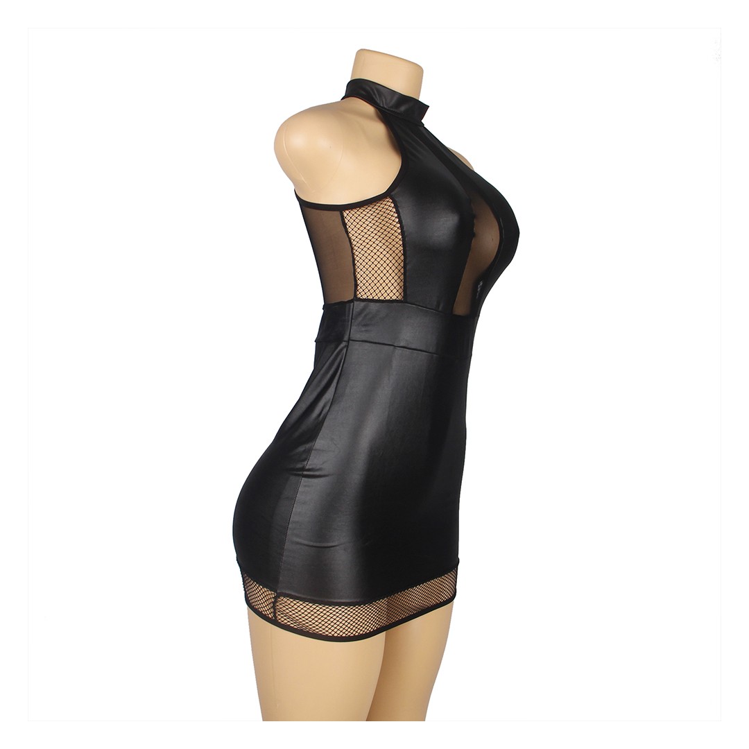 Sublimez vos courbes avec la robe sexy Antinea, alliant tissu effet cuir et détails en résille. Ajustée pour un confort optimal, elle met en avant votre féminité avec une coupe moulante et des côtés transparents. Disponible en plusieurs tailles, c’est la robe parfaite pour affirmer votre sensualité avec élégance.