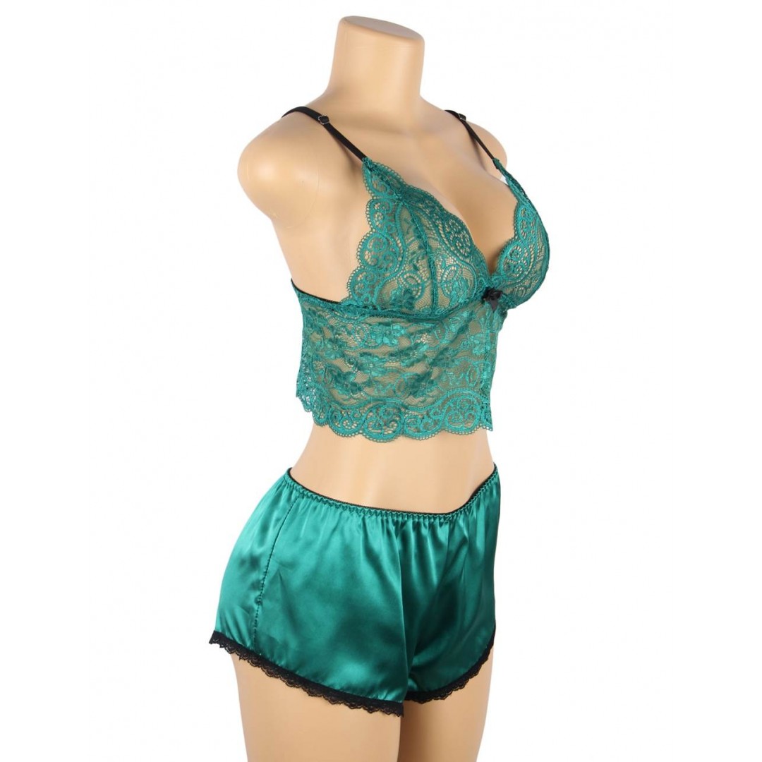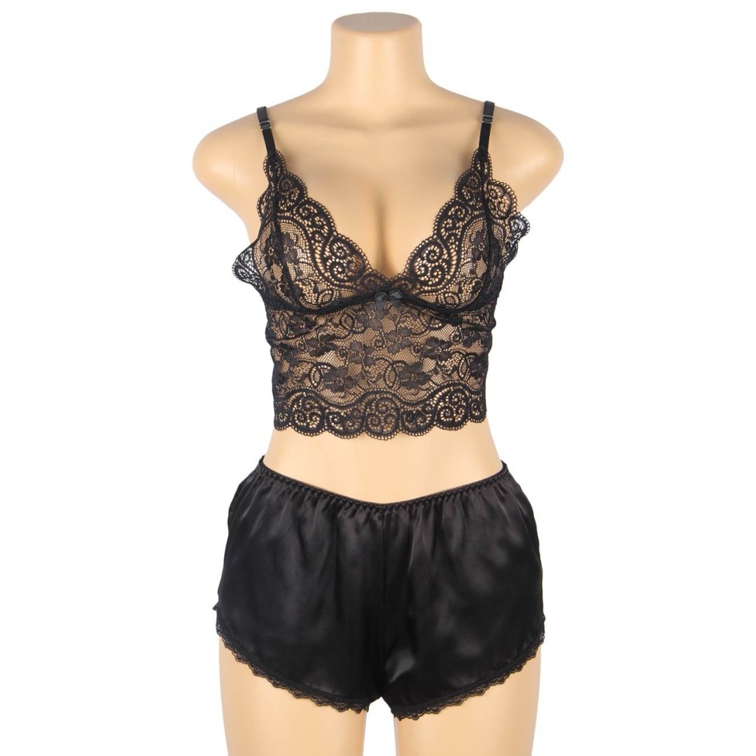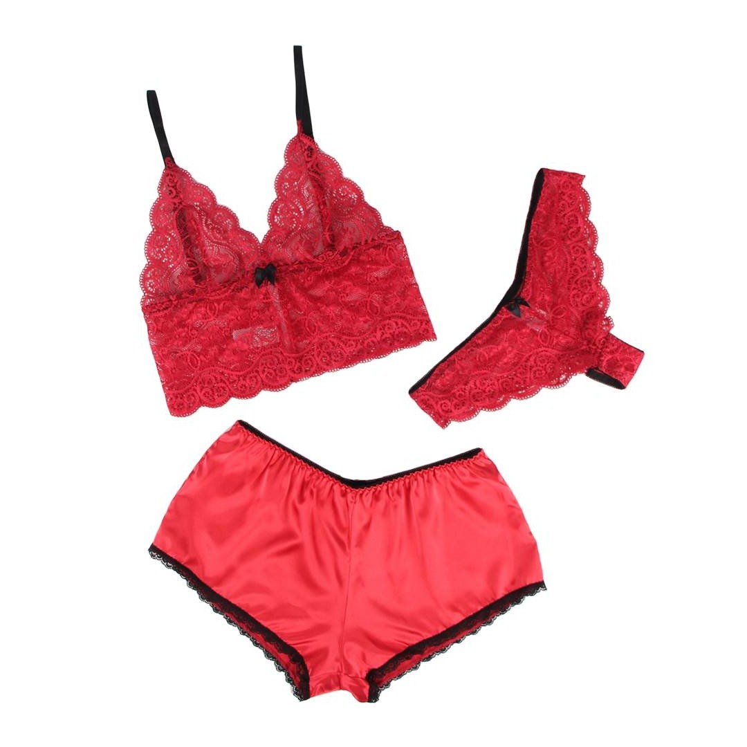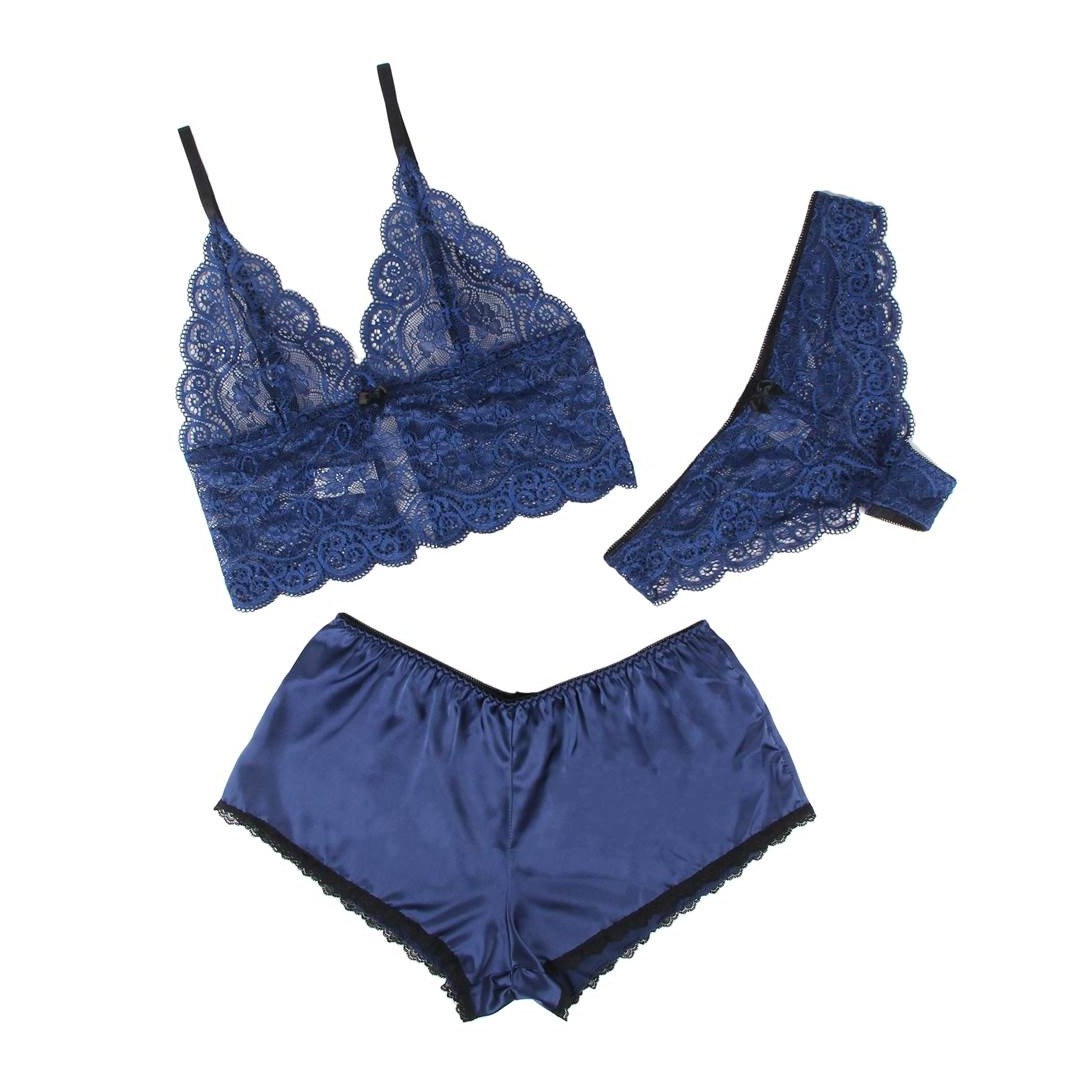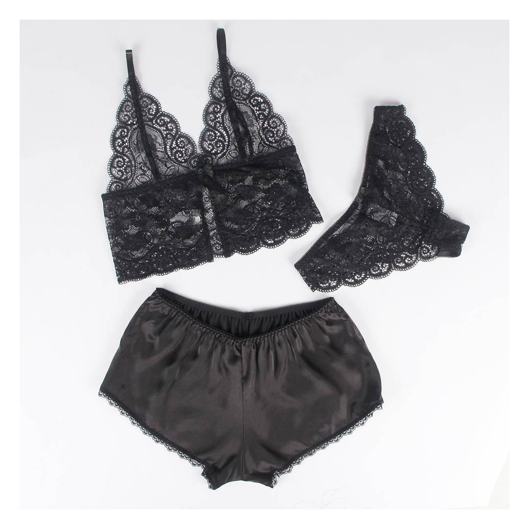 L’ensemble 3 pièces Ludmila combine élégance, confort et sensualité. Composé d’un haut en dentelle, d’un short en satin et d’une culotte assortie, il est parfait pour toutes les occasions. Disponible en plusieurs couleurs, il s’adapte à toutes les morphologies. Ajoutez une touche de raffinement à votre garde-robe dès aujourd’hui.