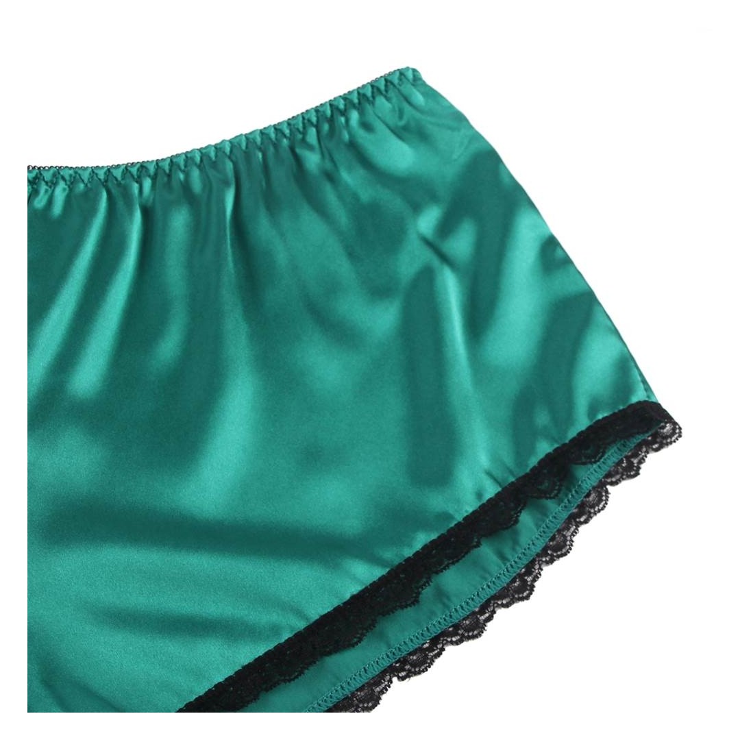 Le short en satin fluide apporte une sensation de légèreté et de douceur. Sa coupe ample garantit un confort absolu, que ce soit pour une nuit reposante ou pour des moments de détente. Les bordures en dentelle ajoutent une finition sophistiquée qui complète parfaitement le haut. Ce short est conçu pour offrir un maximum de confort tout en restant élégant.
