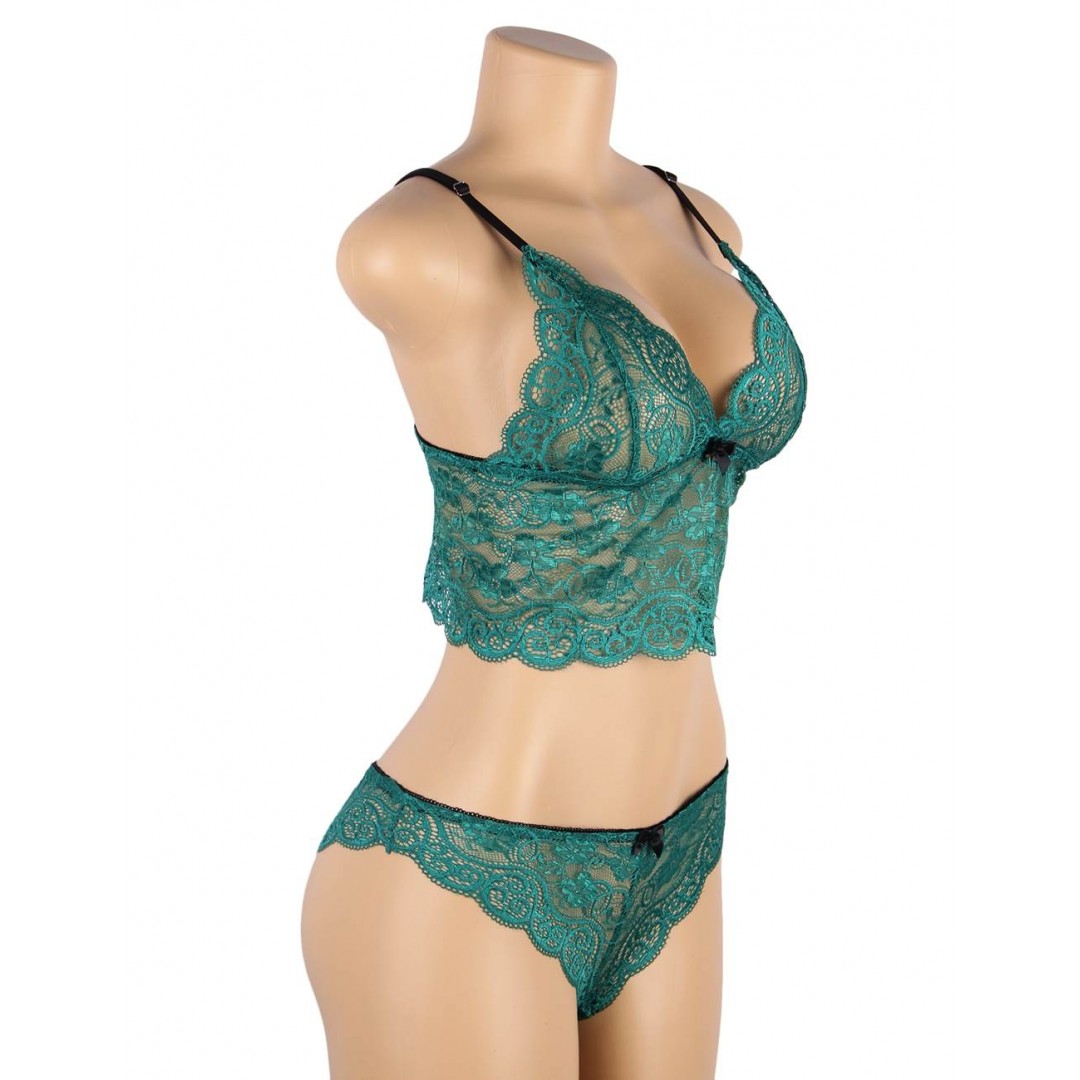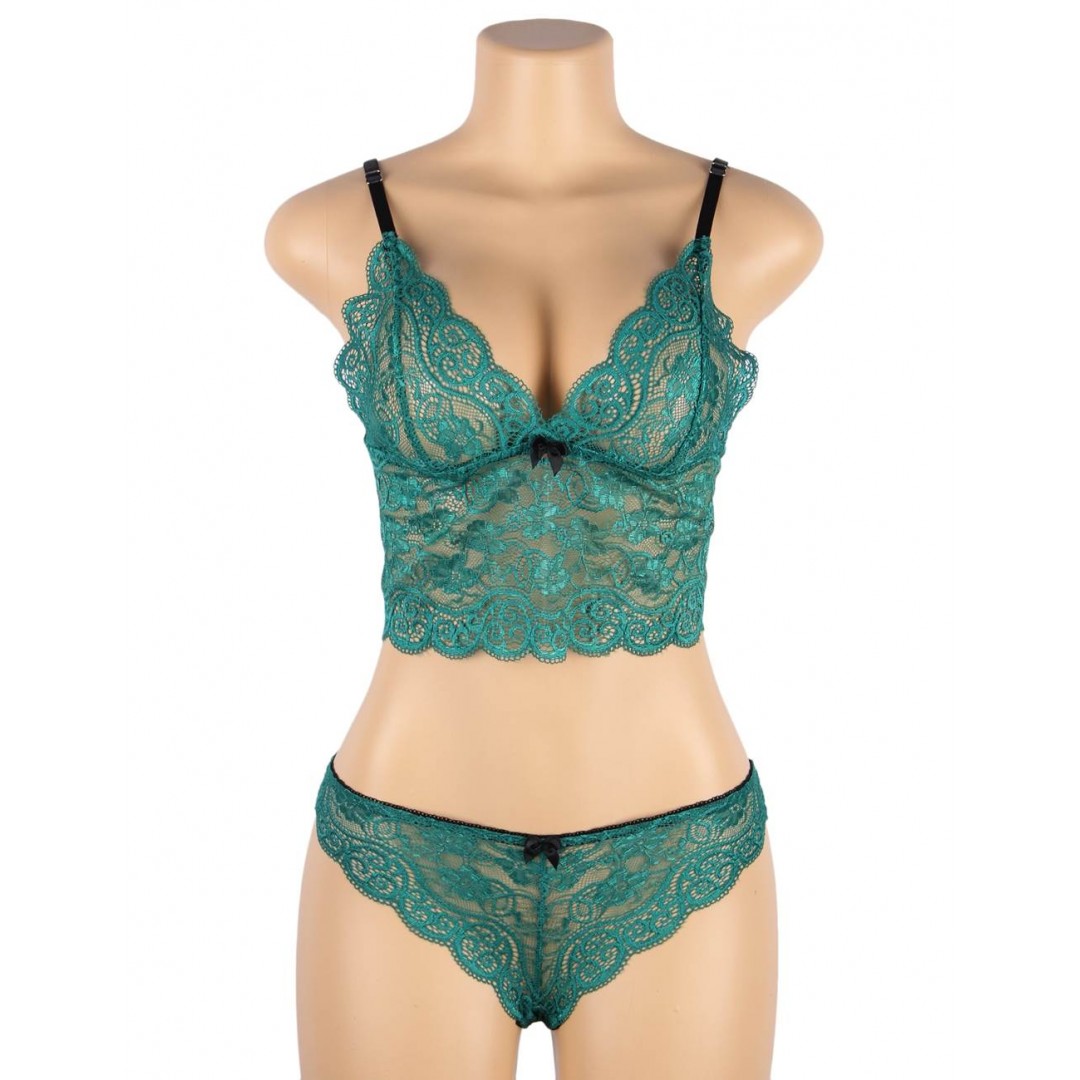 La culotte en dentelle assortie vient compléter cet ensemble. Réalisée avec des matières extensibles, elle épouse vos courbes tout en restant agréable à porter. Les motifs floraux en dentelle et la finition impeccable en font une pièce à la fois pratique et séduisante.