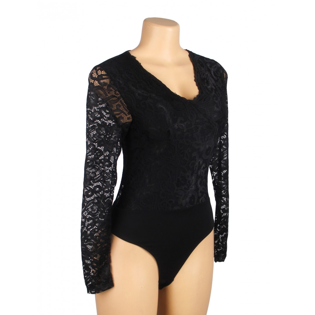 Le body en dentelle manches longues allie élégance et sensualité. Sa dentelle florale sublime la silhouette, tandis que son décolleté en V met en valeur la poitrine. Idéal sous un blazer ou en lingerie sexy. Confortable et ajusté, il assure un look glamour en toute occasion.