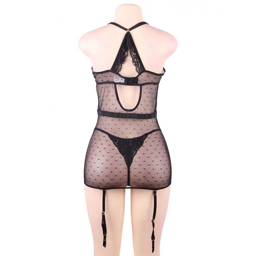 Cette nuisette noire avec armatures dispose également de quatre jarretelles réglables.
