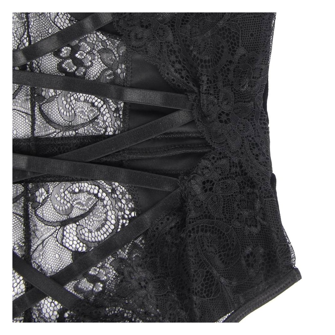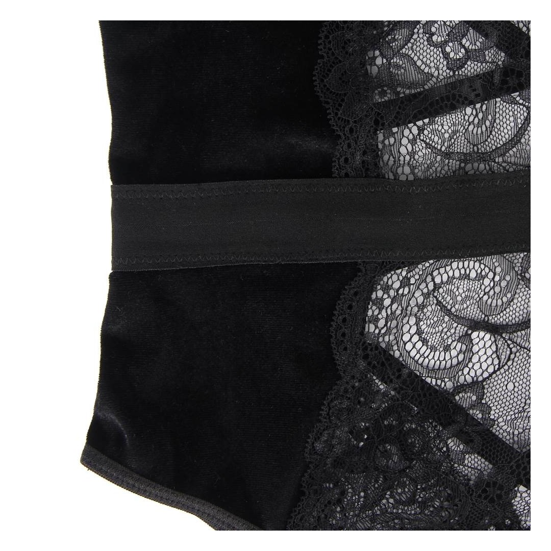 Le bas du body est conçu en dentelle noire délicate, très douce sur la peau.