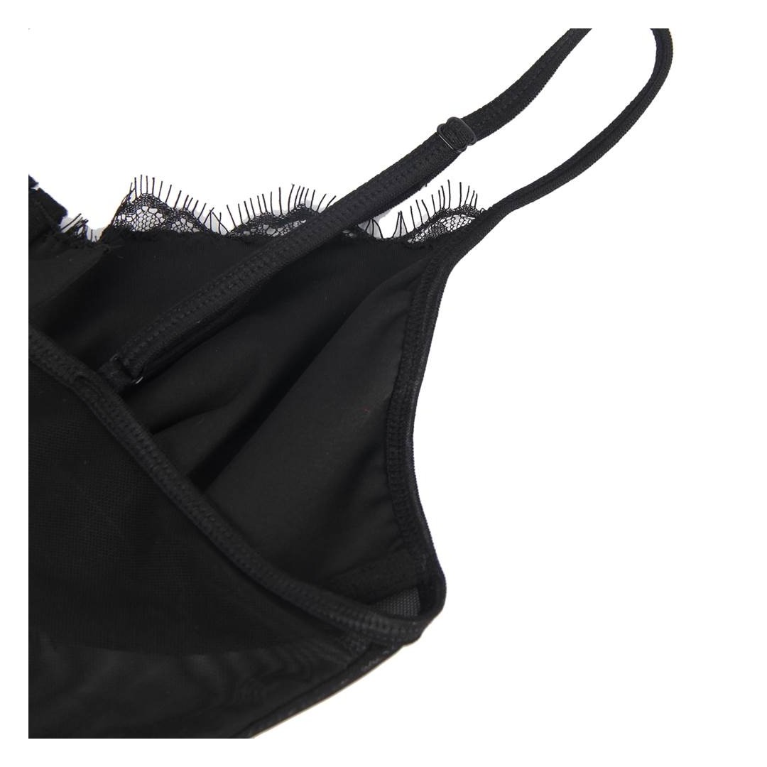 Body noir en dentelle Sadiya avec bonnets à armatures et tulle transparent. Coupe gainante, dos sexy, confort total. Élégant, sensuel et irrésistible.