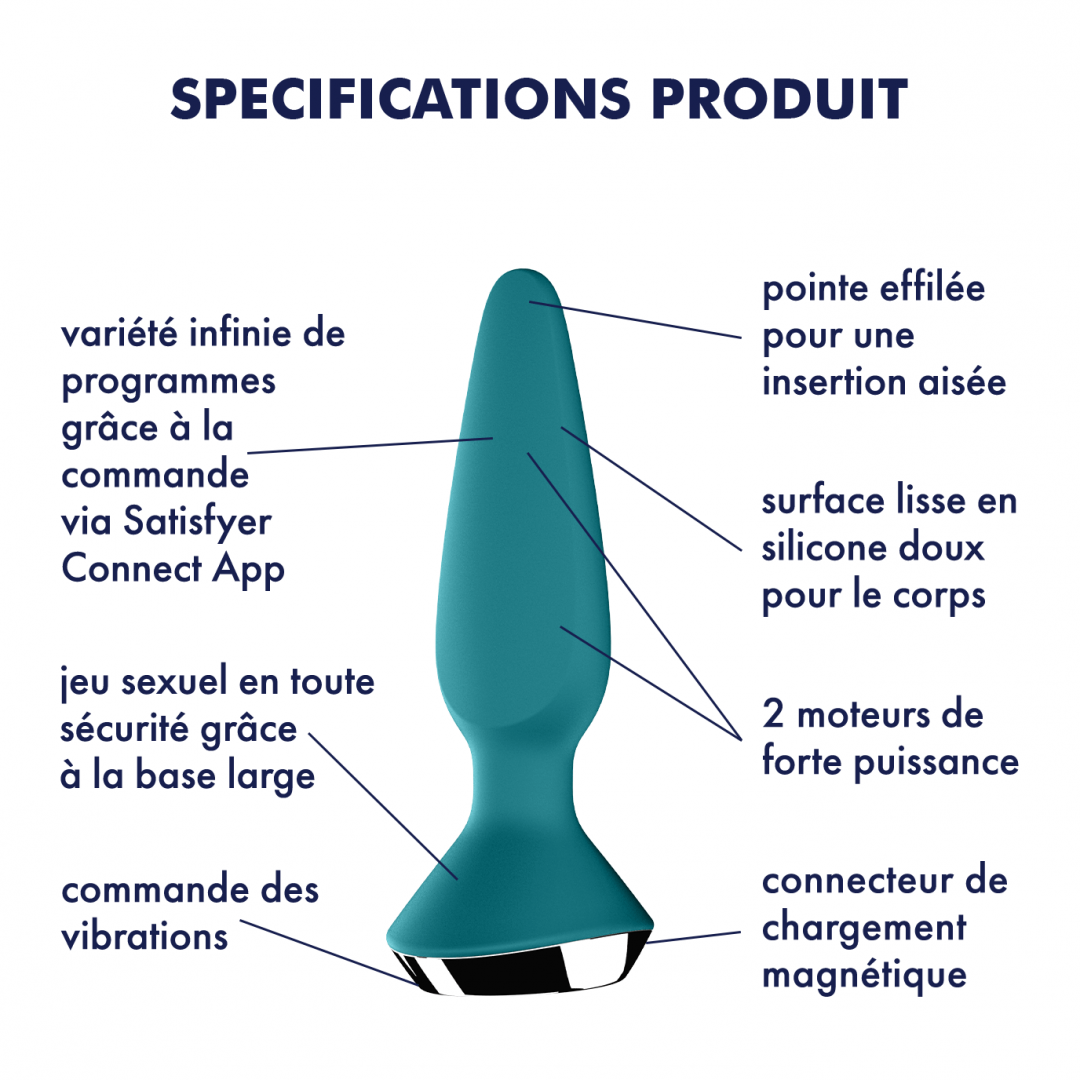 Le Satisfyer Plug-ilicious 1 est un plug anal ergonomique en silicone doux avec 2 moteurs puissants contrôlables via l’appli Satisfyer Connect. Étanche, sécurisé et adapté à tous les genres, il offre une stimulation anale excitante avec des vibrations personnalisées pour des plaisirs intimes uniques. Idéal pour débutants et experts.