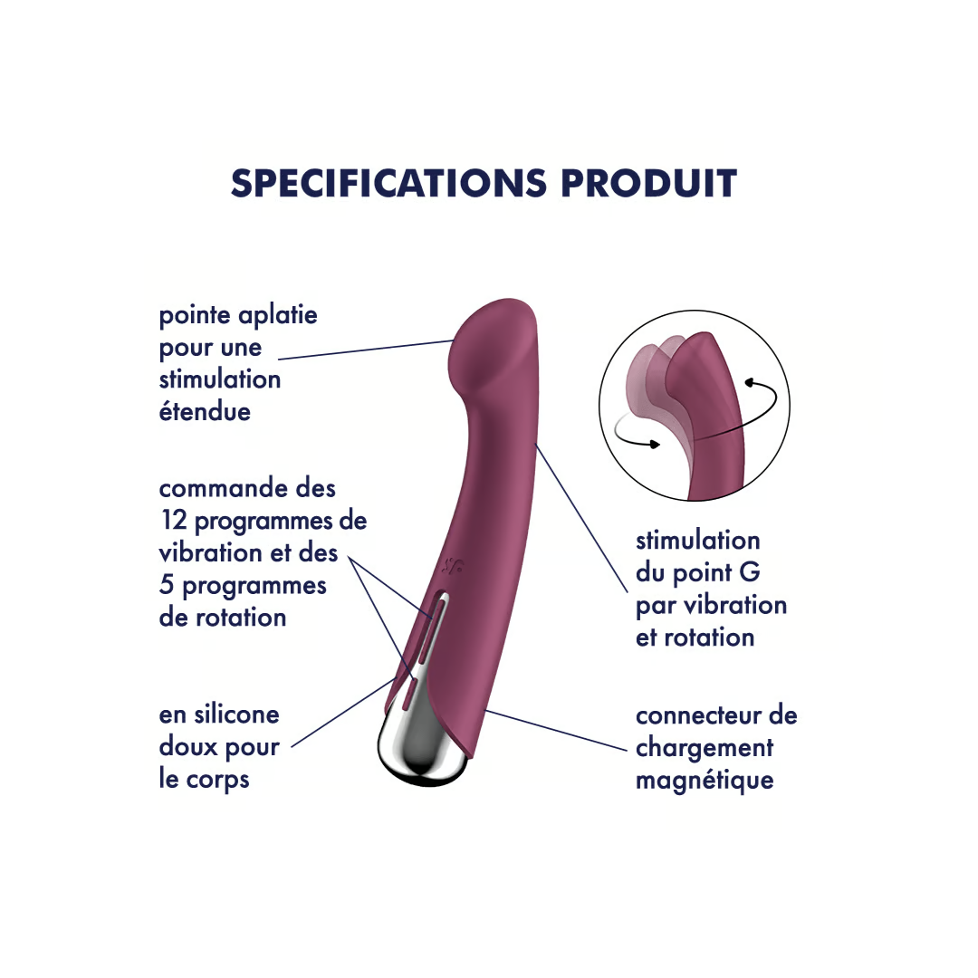 La nouvelle série Satisfyer Spinning vous fera tourner la tête à coup sûr : le Satisfyer Spinning G-Spot 1 est un vibromasseur point G qui vibre et tourne pour vous offrir une toute nouvelle expérience sensuelle.