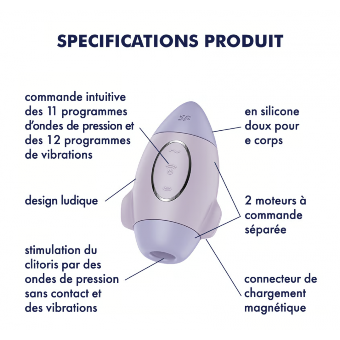 Le Satisfyer Mission Control est un vibromasseur innovant à technologie Air Pulse pour une stimulation clitoridienne sans contact. Son design ludique en forme de fusée attire immédiatement l'attention. Ce petit jouet de plaisir est conçu pour les débutantes et permet une exploration en douceur de sensations intenses.