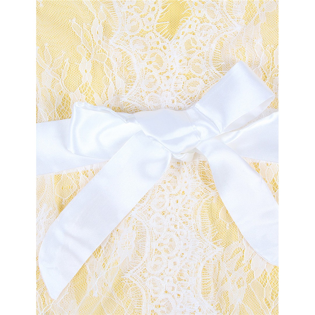 Le dos du peignoir blanc est tout aussi travaillé que l’avant. La dentelle transparente habille délicatement les épaules et le dos, révélant avec poésie les lignes du corps. Ce modèle offre une allure légère, angélique, mais résolument séduisante. Il incarne l’alliance parfaite entre confort de nuit et élégance de jour.