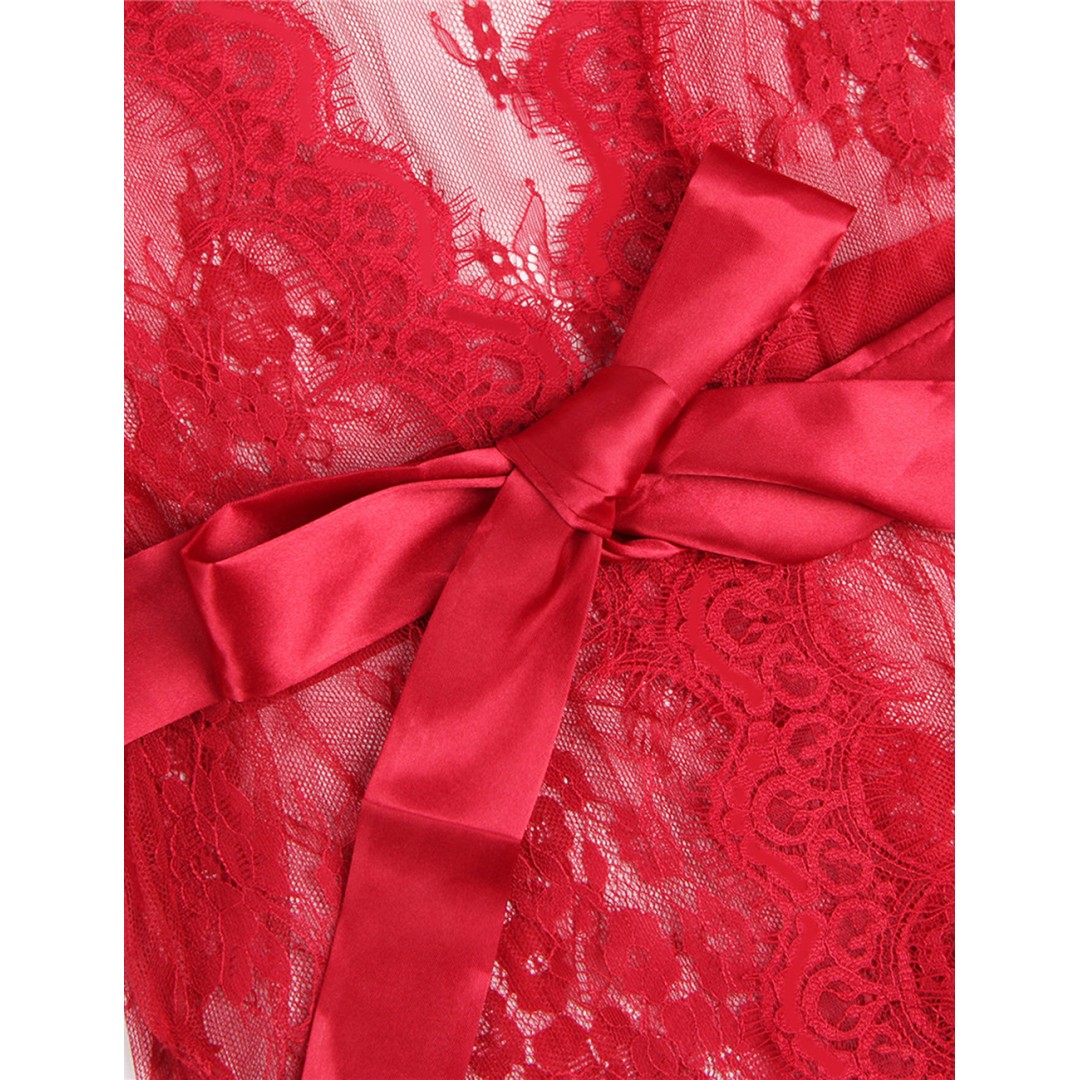 Collection de peignoirs en dentelle transparente : blanc, rouge et noir. Élégants, féminins, avec manches longues et ceinture satinée. Parfaits pour séduire, offrir ou se détendre. Dentelle florale raffinée et confort absolu.