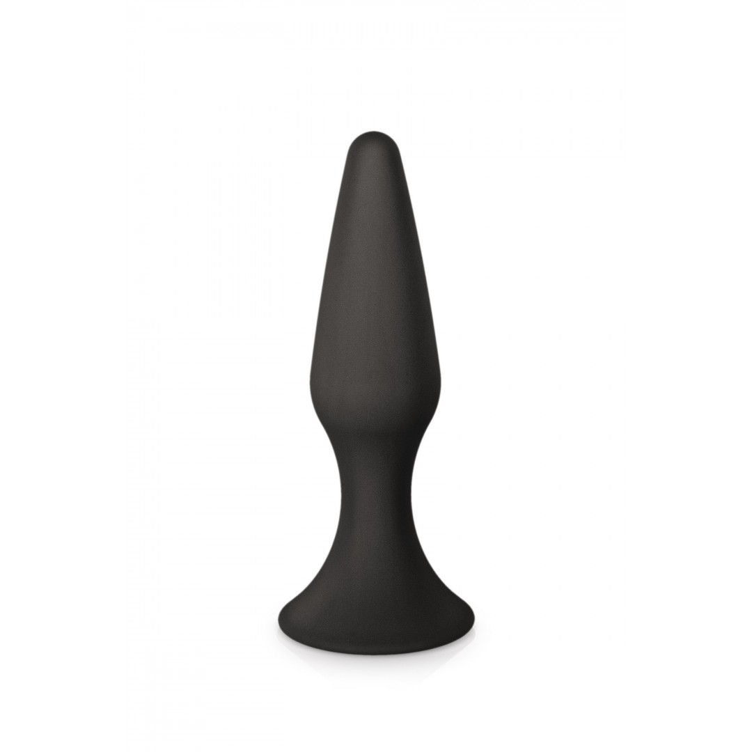 Plug anal en silicone avec ventouse, disponible en S, M ou L, rose ou noir. Sans phtalates, doux, flexible, ventouse puissante.